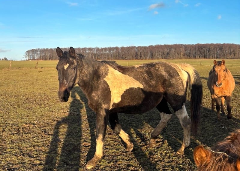 Pizula’s Carima (geb. 2006) ist eine bewährte Zuchtstute mit sehr guter Abstammung und ausgezeichnetem Mutterinstinkt. Sie wurde bei uns ausschließlich in der Zucht eingesetzt und überzeugt durch Zuverlässigkeit und ein ausgeglichenes Wesen. - Dunkelbraunschecke (Pinto) - tragend (Hengst Appaloosa) - sehr gute Mutterstute - fohlt problemlos allein - bei uns stets problemlos auf der Koppel abgefohlt - menschenbezogen - verladefromm - läuft brav als Handpferd - früher geritten - vollständige Abstammung vorhanden - interessant für Zucht und Freizeitbereich Der Verkauf erfolgt aus Altersgründen im Rahmen einer Bestandsverkleinerung eines über viele Jahre aufgebauten Pferdebestandes. Es handelt sich ausdrücklich nicht um Notverkäufe.