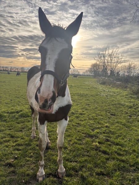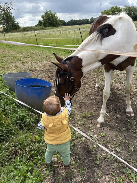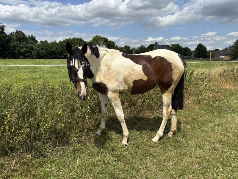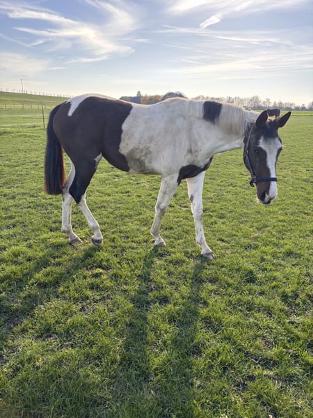 Hiermit verkaufe ich meine hübsche Stute. Sie ist total lieb, an den Menschen gewöhnt, lässt sich super am Halfter führen, lässt sich putzen, anbinden und verladen. Im Umgang ist sie für ihr Alter ein richtiger Schatz. Hufe auskratzen ist auch kein Problem. Beim Schmied ist sie noch etwas aufgeregt, lässt sich aber mit Futter super ablenken. Sie kennt Kinder und Trecker. Wenn Kinder um sie rum sind, bleibt sie ruhig und lässt sich auch von kleinen Kindern putzen.
