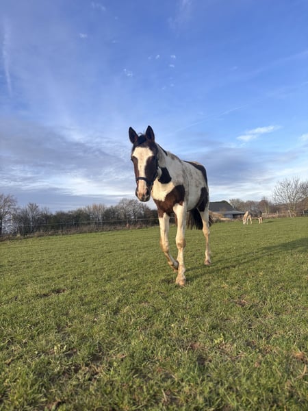 Hierbij verkoop ik mijn mooie merrie. Ze is heel lief, gewend aan mensen, laat zich uitstekend aan de halter leiden, wordt makkelijk gepoetst, aangebonden en ingeladen. In omgang is ze voor haar leeftijd echt een schat. Het uitkrabben van haar hoeven is geen probleem. Bij de hoefsmid is ze nog een beetje onrustig, maar kan zich goed laten afleiden met voer. Ze kent kinderen en trekkers. Als kinderen in haar buurt zijn, blijft ze rustig en laat zich zelfs door kleine kinderen poetsen.