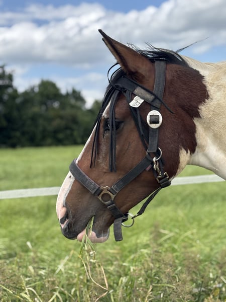 I am selling my lovely mare. She is very gentle, well accustomed to people, and handles superbly on a halter. She is easy to groom, ground tie, and load. For her age, she is a real gem in handling. Picking out her hooves is no problem. She can be a bit nervous at the blacksmith’s, but she is easily distracted with treats. She is familiar with children and tractors. When children are around, she remains calm and allows even young kids to groom her.