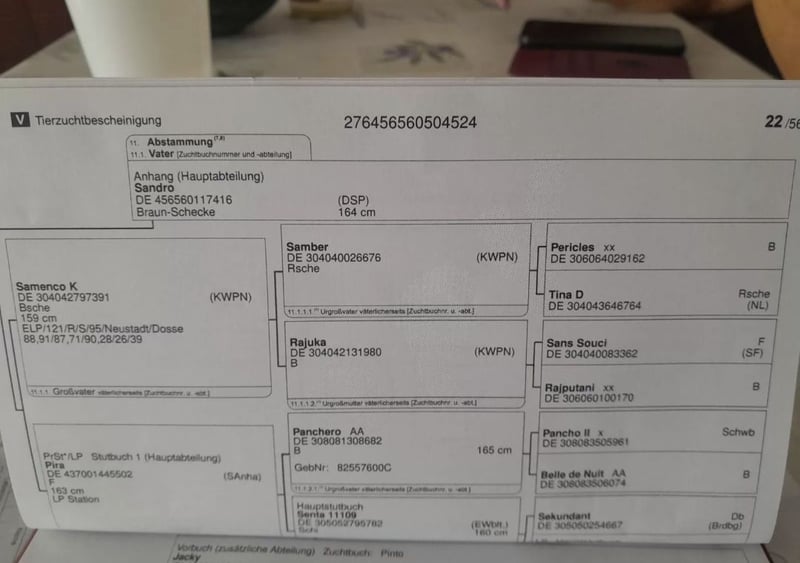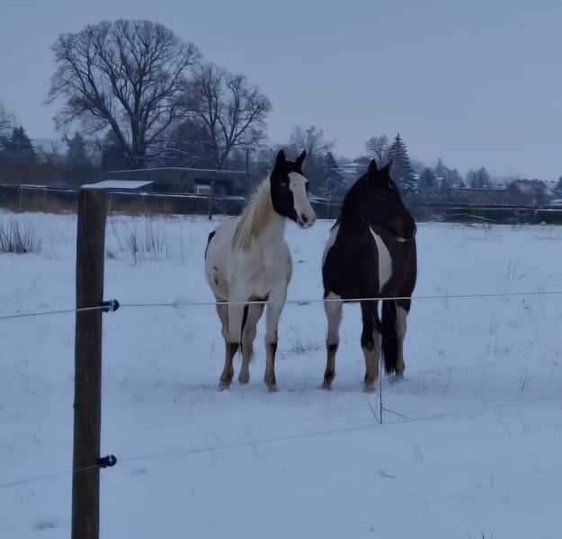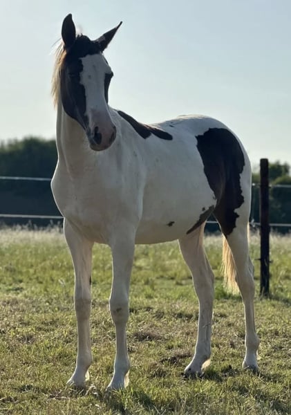 Pinto Jungstute Saphira aus bester Sportpferdeabstammung Zum Verkauf steht die bildschöne Pinto Jungstute Saphira, geboren am 06.06.2024. Eckdaten: Name: Saphira Rasse: Pinto Geschlecht: Stute Alter: 2 Jahre Endmaß: ca. 1,65 m Abstammung: Beste Sportpferdelinien Mutter: Irisches Sportpferd Rappschecke Saphira vereint sportliches Potenzial mit auffälliger Optik. Sie bringt elegante Bewegungen, einen klaren Charakter und beste Voraussetzungen für eine Karriere im Sport oder als vielseitiger Freizeitpartner mit. Sie ist halfterführig, kennt das Fohlen-ABC und zeigt sich im täglichen Umgang sehr menschenbezogen und neugierig. Ein echtes Nachwuchstalent mit Charisma und Zukunft! Nur in fördernde, pferdegerechte Hände abzugeben. Preis auf Anfrage. Bei Interesse freuen wir uns über eine Nachricht mit ein paar Informationen zu dir und dem zukünftigen Zuhause.