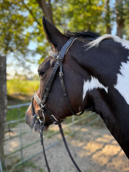 Onze prachtige Sunny is op 17 mei 2021 bij ons geboren en groeit sindsdien op een diervriendelijke en familiale manier op in een kleine gemengde kudde op een paddock met uitloop, direct bij ons huis. In de zomer graast ze 24 uur per dag. Ze is goed gesocialiseerd en vriendelijk. Sunny is pas recent onder het zadel en is daarom pas op haar vierde jaar voorzichtig bereden. Ze is gemotiveerd en onbevreesd tijdens het werk. Een aansprekende merrie die snel leert en altijd tevreden wil stellen. Ze kent ook vrijspringen, wat ze eveneens met verve volbrengt. Ook in de dagelijkse omgang is ze een droom. Of het nu wegverkeer, grote machines, onbekende omgevingen of kinderdrukte is – ze laat zich niet uit haar evenwicht brengen. Kleine kinderen kunnen haar probleemloos poetsen, leiden, stappen en met haar knuffelen. Natuurlijk is ze ontwormd, gevaccineerd, bij de tandarts geweest en heeft ze kennis gemaakt met de hoefsmid en het rijden in de trailer. Sunny heeft als veulen de veulenkampioensprijs gewonnen en heeft deze zomer de stamboekprijs ontvangen, waardoor ze ook zeer interessant is voor de fokkerij. Afstamming: Stilett (Samba-pa-ti x Ramalgo Z) uit een stamboekmerrie van Caspars Quick Star (Eurocommerce Berlin) x Nordstar (Night-Star). De vader, "Stilett", heeft successen behaald in dressuur en springen tot en met M-niveau. Tot ver in haar oude dag was hij de perfecte leermeester voor kinderen. Hij is helaas recent overleden; Sunny is uit zijn laatste jaargang. Ze loopt naakt en is momenteel 1,53 m groot. Omdat we haar in de toekomst niet meer de tijd kunnen geven die ze verdient, staat ze klaar voor een nieuw, geweldig thuis. We zijn ervan overtuigd dat ze een prachtige allrounder zal worden. Een video van haar alle drie basisgangen is beschikbaar en wordt bij serieuze interesse graag gedeeld.