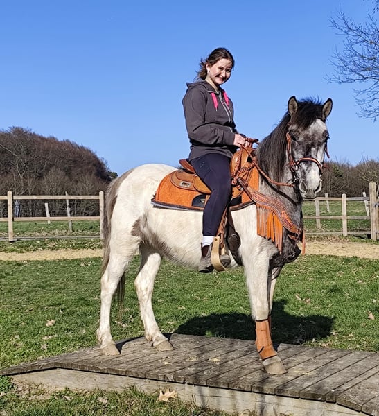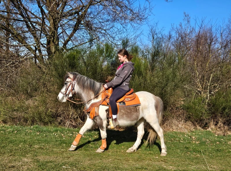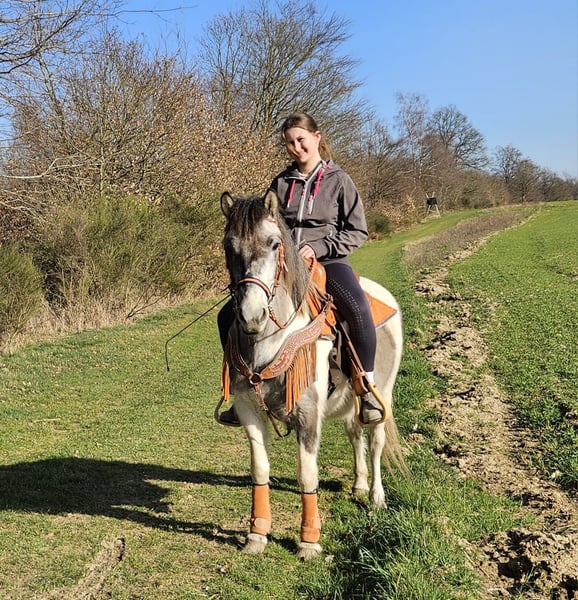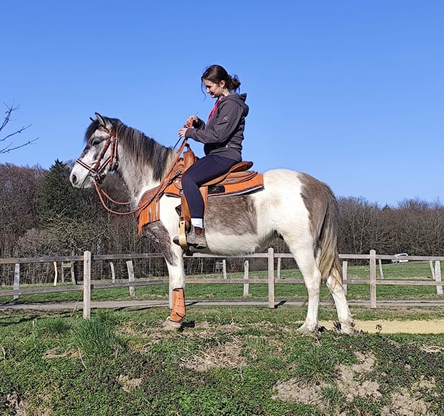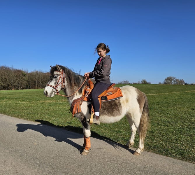 Pintopony MELINA 6 j Stockmaß: ca. 1,36 m E-Paß ,Microchip und Tierärztlich - Untersucht Preis: 4900,- AKU vorhanden Sie ist: – brav im Umgang und beim Reiten – freundlich & menschenbezogen – lernwillig und zuverlässig – in der seltenen & auffälligen Farbe – bestens geeignet für Freizeit & Gelände Perfekt für: Reiter mit etwas Erfahrung, die eine junge, solide Stute weiter fördern möchten Unsere Pferde: – regelmäßig entwurmt – vom Schmied & Osteopathen betreut Hofladen: Westernsättel, Trensen, Zubehör Transport & Zubehör auf Wunsch günstig organisiert Unser Service: ✅ 3 Monate Umtauschrecht ✅ Proberitt: 35 €, jedes weitere Pferd 25 € (beim Kauf am selben Tag angerechnet) ✅ 100 € Sofort-Rabatt bei Abholung/Transport am selben Tag ✅ Persönliche & ehrliche Beratung Anfragen bitte nur telefonisch: 0171 – 4001968 Täglich erreichbar von 8–20 Uhr ⚠️ Keine E-Mail oder WhatsApp ⚠️ Alle Angaben ohne Gewähr