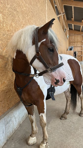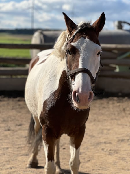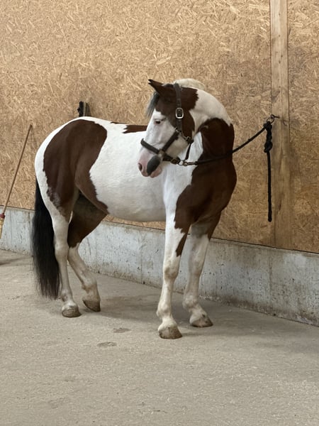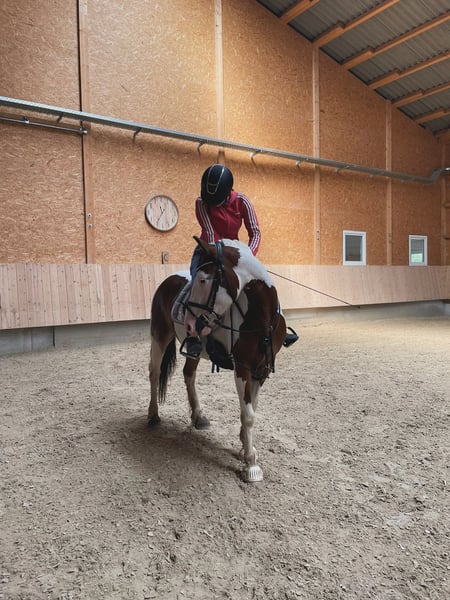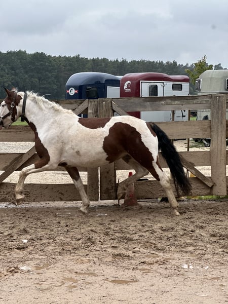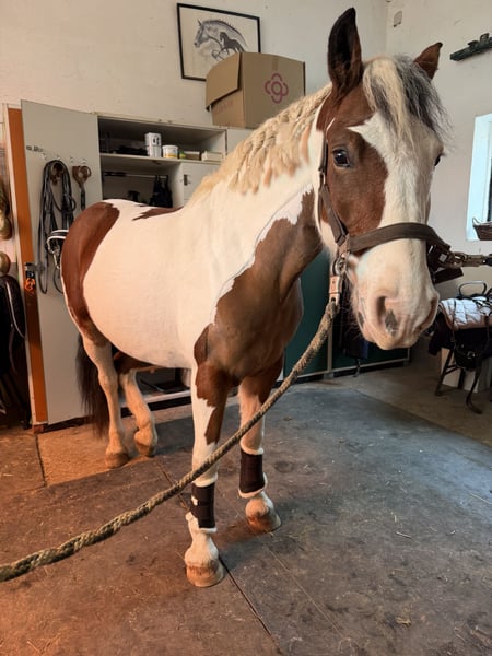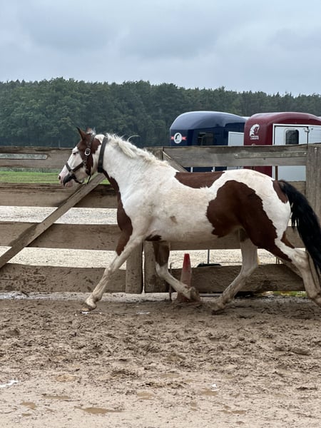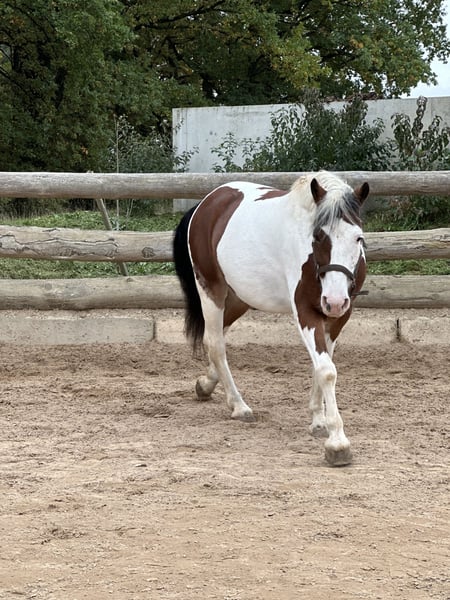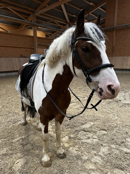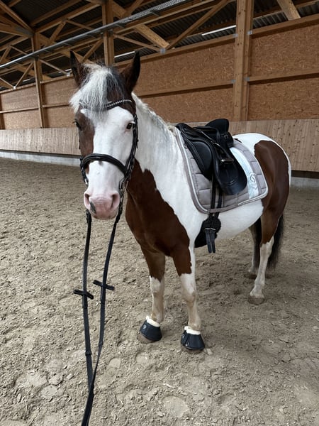 Ich verkaufe meine liebevolle 6-jährige Pinto-Stute (ca. 146 cm), die im Dezember 2024 angeritten wurde. Sie zeigt sich dabei sehr lernfreudig, brav und motiviert. Alle drei Grundgangarten sind bereits ordentlich geritten, und sie hat sichtlich Spaß an der Arbeit. Im Gelände ist sie absolut zuverlässig – sie geht problemlos ins Gelände und zeigt sich dabei stets nervenstark und ausgeglichen. Charakter & Eignung: Ein richtiges Herzenspony, das gefallen möchte und mit dem man jeden Tag Freude hat. Ideal als Freizeitpony oder für ambitionierte Reiter, die ein junges Pferd weiter fördern möchten. Gesundheit & Hinweis: Leider hat sie Sommerekzem, weshalb sie deutlich günstiger abgegeben wird. Mit passender Pflege (Decke, Hautpflege) war sie diesen Sommer nahezu symptomfrei. Ansonsten ist sie topfit und gesund. Wichtig: Sie wird nur in allerbeste Hände abgegeben – Platz vor Preis! Optional kann passendes Zubehör mit erworben werden. Ein tolles Pony mit Zukunft, das Menschen sucht, die ihr genauso viel Freude schenken, wie sie zurückgibt Gerne anrufen oder per WhatsApp 015110204876 .