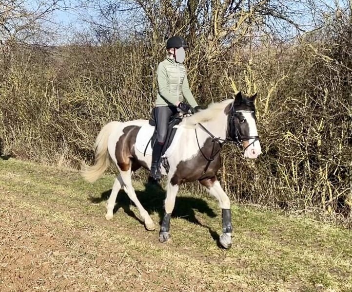 Six-year-old Pinto mare (approximately 14.1 hh) – well-behaved and trail-safe We are offering a lovely Pinto mare with a pleasant temperament and a clear head. The mare is 6 years old and about 14.1 hands tall. She has been ridden by her previous owner and is regularly ridden with us. She is reliable both alone and in a group when out on the trails. In the indoor arena, she also proves to be well-behaved and pleasant to ride. In daily handling, she is uncomplicated and shows a very friendly attitude towards people. ✔ ridden ✔ well-behaved under saddle ✔ trail-safe (alone and in a group) ✔ shoe- and loading-friendly ✔ herd-compatible She is healthy, regularly vaccinated and dewormed. A lovely leisure horse for riders seeking an honest and uncomplicated partner for rides and recreational riding. Further information, videos, or an appointment for a first meeting are available upon request.