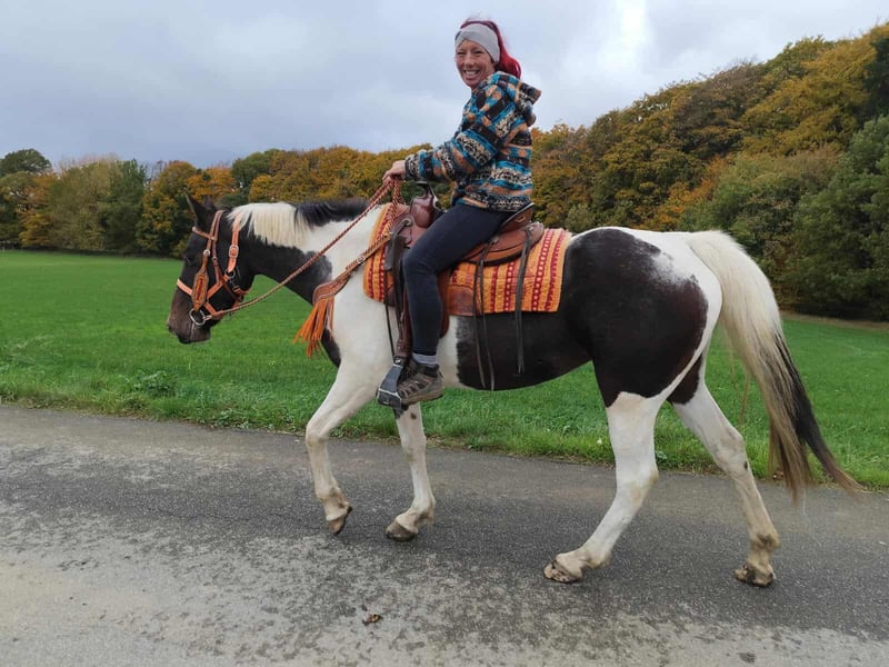 Freizeitpartner-Wanderreiten -Schul oder Familienpferd CALINE Alter: 7 Jahre Stockmaß: ca. 1,58 stm Preis: 6900 AKU: vorhanden E-Paß u. Microchip ✨ Über die Stute: Diese nette Pinto Stute hat ein freundliches Wesen. Sie ist brav im Umgang,unter dem Sattel brav und zeigt sich stets menschenbezogen und lernwillig. Mit ihrer charmanten Art ist sie eine tolle Freizeitpartnerin . Ihr Westernsattel und Zubehör kann für 1500,- mit ins neue Heim gebracht werden . Perfekt für: Pintostute die sowohl im Gelände als auch in der Freizeit überzeugt Kennt Herdenhaltung im Offenstall sowie auch Boxenhaltung . Unsere Pferde: – regelmäßig entwurmt – vom Schmied & Osteopathen betreut Hofladen: Westernsättel, Trensen, Zubehör ihr Westernzubehör kann gerne übernommen werden ca. 1500,. incl Markenwesternsattel . Transport & Zubehör auf Wunsch günstig organisiert Unser Service: ✅ 3 Monate Umtauschrecht ✅ Proberitt: 35 €, jedes weitere Pferd 25 € (beim Kauf am selben Tag angerechnet) ✅ 100 € Sofort-Rabatt bei Abholung/Transport am selben Tag ✅ Persönliche & ehrliche Beratung Anfragen bitte nur telefonisch: 0171 – 4001968 Täglich erreichbar von 8–20 Uhr ⚠️ Keine E-Mail oder WhatsApp ⚠️ Alle Angaben ohne Gewähr