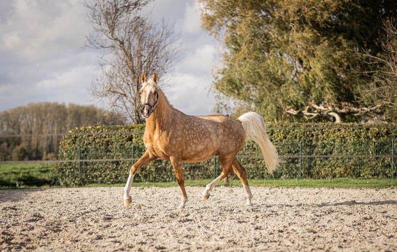 This talented, almost 4-year-old Palomini gelding, son of Davinci du Bois, is ready for the future! A pony with a very child-friendly temperament, he gives a very safe feeling. He's very level-headed and calm, enjoys attention, and has a very pleasant disposition! His dam is a daughter of Winston Jr., who comes from a very strong dam line. We are certain this golden pony has a bright future ahead of him. We are looking for a wonderful home where he can make a child very happy! Asking price €12.5 Pony may be inspected, buyer's costs are at the buyer's expense.