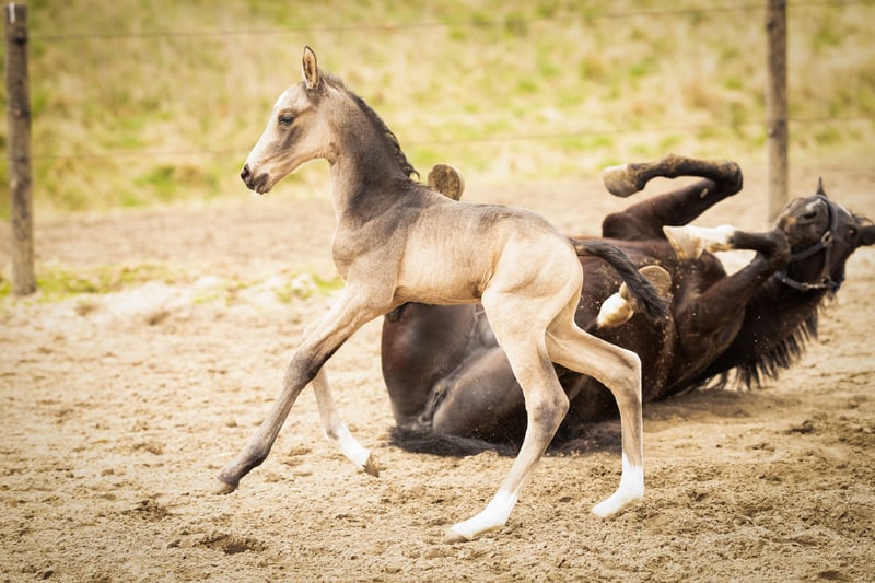 Bien construido, de color inusual y buen movimiento. White Dream GF (entre otros Weltmeyer, White Magic y Phillipo) x yegua de deporte/presentación estrellada de Jazz x Juventus. Tamaño esperado alrededor de 1.65 m + De una línea de yeguas de deporte fuerte.