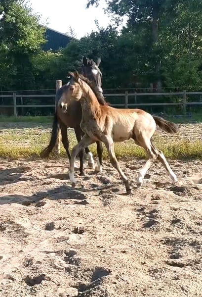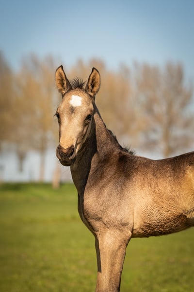 Nicely built, separate in color and moving well. Expected height in height around 1.66. Falk in color. From the famous burga Reina lineage. White Dream GF (Weltmeyer, White Magic and Phillipo) x provisional keur mare by Formidable (Florret AS) x Houston x Feinbrand. If you really want something special? Stand out in the ring? Feel free to send a private message for more information