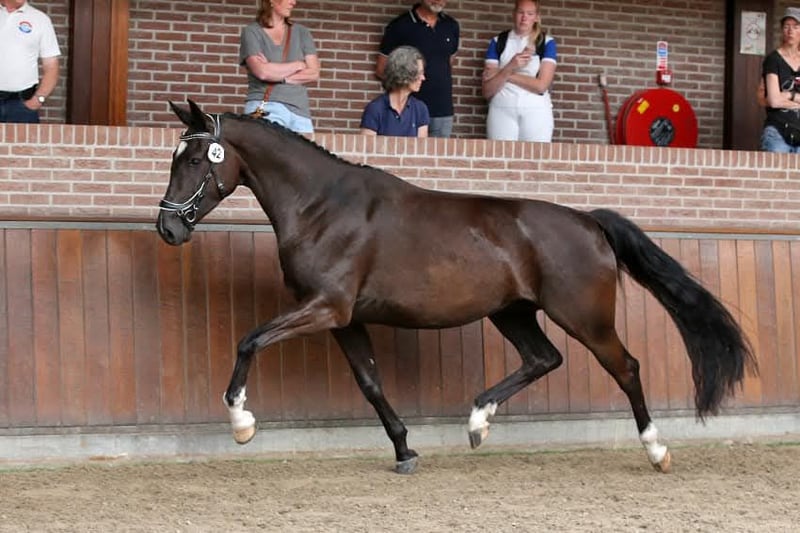 Bien construit, de couleur particulière et bien en mouvement. Très amical et facile à manipuler. White Dream GF (notamment Weltmeyer, White Magic et Phillipo) x jument provisoirement keur de Formidable (Florret AS) x Houston x Feinbrand de la célèbre lignée burga Reina. Taille attendue autour de 1,68 +/-. Lors de l'évaluation, il a obtenu une première prime et une invitation pour l'évaluation nationale. Le jury était très enthousiaste à son sujet.