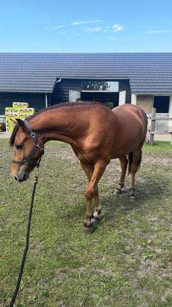 Zur Prüfung in Enschede (OV), Niederlande, steht folgendes Pferd zur Verfügung: „Call me Timeless Blue“ 2023 Geschätzte Endmaßhöhe: 1,58 m Ruin 🧬 Cero Blue TN, vom KWPN zugelassener Hengst Die Mutter ist Fleur, eingetragen im NRPS Hulpstamboek. Für weitere Informationen senden Sie bitte eine Nachricht. Körung ist möglich, auf Wunsch auch mit Abstrich. Blue hat beim NRPS Fohlenstammbuchsieg die erste Prämie erhalten. „Blue“ wurde von uns selbst gezogen und ist auf einer privaten Anlage aufgewachsen, gemeinsam mit einem anderen Wallach. Blue ist äußerst freundlich und arbeitswillig, mit einem sehr liebenswürdigen, puppyartigen Charakter. Er lässt sich problemlos mit einer Halfter versehen. Er bleibt beim Hufschmied ruhig stehen. Er kennt das Anbinden, Putzen, Waschen und Scheren. Er geht brav an der Halfterführung mit. Er lädt leicht in den Trailer ein. Er hat die Gelassenheit seines Vaters und das Charaktermerkmal seiner Mutter: sehr arbeitswillig, brav, mit genügend Temperament und Power. Zudem besitzt er eine besondere Farbe, die man nicht häufig antrifft. Preis nach Vereinbarung!