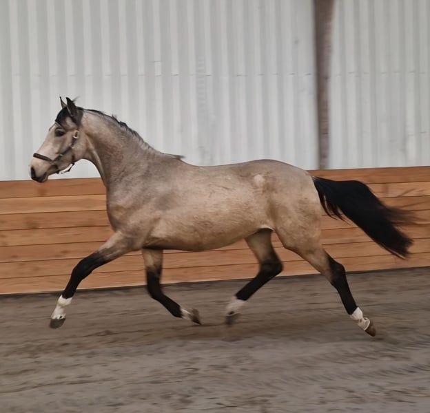 Wat is hij gaaf!!! Een 3 jarige springgefokte valkhengst Zijn afstamming: Krem's Perfect Choice x Mc Jonnas x Sam R. Een knap, vriendelijk en zeer getalenteerd paard! Hij komt net uit de groep, een sociaal paard zowel naar mens als paard. Hij is nu nog onbeleerd. Geboren in 2023 en heeft een stokmaat van circa 1.66m. Beweegt er top over, met veel takt. Maakt daarnaast een goede sprong. Hij heeft alles in zich om zich verder te ontwikkelen tot allrounder. Rontgen gekeurd incl. Hals en rug. Voor meer info graag bellen of appen, 0613704472