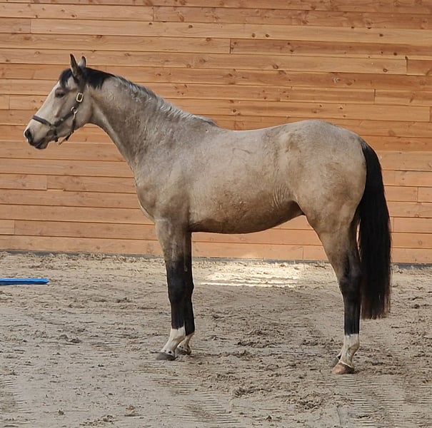 Wie er ist, ist einfach großartig!!! Ein 3-jähriger Springpferdehengst Seine Abstammung: Krem's Perfect Choice x Mc Jonnas x Sam R. Ein hübsches, freundliches und äußerst talentiertes Pferd! Er kommt gerade aus der Herde, ist ein soziales Pferd sowohl gegenüber Menschen als auch Artgenossen. Er ist noch ungeritten. Geboren im Jahr 2023, hat eine Stockmaß von ca. 1,66 m. Bewegt sich hervorragend, mit viel Takt. Zudem macht er einen guten Sprung. Er besitzt alles, um sich weiter zu einem Allrounder zu entwickeln. Röntgenuntersucht inklusive Hals- und Rückenaufnahmen. Für weitere Informationen gerne anrufen oder WhatsApp schicken unter 0613704472.