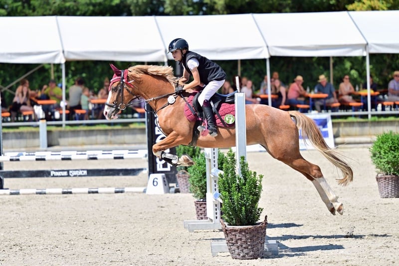 Verkaufe elegante niederländische Reitpony-Stute – ideal für Springbegeisterte/ auch für Springanfänger Zum Verkauf steht eine wunderschöne Fuchsstute, viermal hochweiß gestiefelt, geboren im Jahr 2016, mit einem Stockmaß von 148 cm. Sichere Partnerin für Springen. Hat am Turnier noch nie gebremst. Selbst unbekannte Geländesprünge meistert sie mutig, schaut nichts an und hilft dem Reiter wenn nötig. Allerdings ist sie im Parcours mit etwas go ausgestattet, für Kinder/Jugendliche mit weicher Hand aber angenehm zu managen, da sie immer zum Sprung will. Im Umgang von den Kleinsten zu handeln. Geht brav auf den Hänger, ist barhuf (problemlos auch auf Grasplätzen und Gelandestrecken) Leider mit anderen Pferden etwas stutig und verträgt sie sich nicht mit zwei meiner anderen Stuten, weshalb sie bei uns nicht im Offenstall sondern nachts in der Box und Tags im Paddock steht. Dressurmäßig ist noch Luft nach oben, deckt aber auch gut Erwachsene ab, so dass gut ein erfahrener Reiter mit reiten kann. Ein tolles Pferd für ambitionierte Reiter, die eine zuverlässige Partnerin für Freizeit oder auch den Einstieg in den Springsport suchen! Anfragen sehr gerne per WhatsApp 01704696745 Bitte Textnachricht! Empfang zum Telefonieren zu schlecht! Videos zb auf Rimondo "Lianne 7" Oder Instagram "reiterhofkempf" -> Highlights: "Anne"