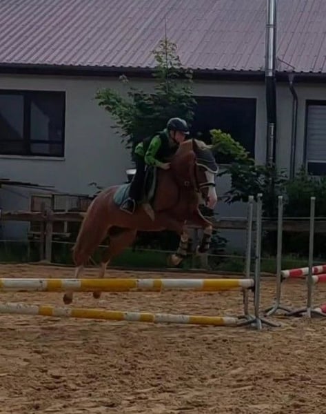 Sprzedam elegancką holenderską klaczę skokową – idealną dla miłośników skoków lub początkujących jeźdźców. Na sprzedaż piękna kasztanowa klacz, czterokrotnie wysokowłosem obszyta, urodzona w 2016 roku, o wzroście 148 cm. Solidna partnerka do skoków. Na zawodach jeszcze nigdy nie zawiodła. Odważnie pokonuje nieznane przeszkody terenowe, nie boi się niczego i wspiera jeźdźca, gdy zajdzie taka potrzeba. Jednak na parkurze ma nieco energii, więc dla dzieci i młodzieży z delikatną ręką jest przyjemna w prowadzeniu, ponieważ zawsze chce skakać. Dobrze się zachowuje w towarzystwie najmłodszych jeźdźców. Chodzi grzecznie na przyczepę, jest bezproblemowa na twardej podeszwie (również na pastwiskach i trasach terenowych). Niestety, jest nieco dominująca w stadzie i nie dogaduje się z dwoma moimi innymi klaczami, dlatego u nas stoi w boksie na noc, a w ciągu dnia na padoku. Pod kątem ujeżdżenia jeszcze ma potencjał, ale dobrze sprawdza się także u dorosłych jeźdźców, więc może być prowadzona przez doświadczonego jeźdźca. Wspaniała propozycja dla ambitnych jeźdźców poszukujących niezawodnej partnerki do rekreacji lub startów w skokach! Zapytania proszę kierować chętnie przez WhatsApp pod numer 01704696745. Proszę o wiadomość tekstową! Zasięg telefoniczny jest zbyt słaby do rozmowy.