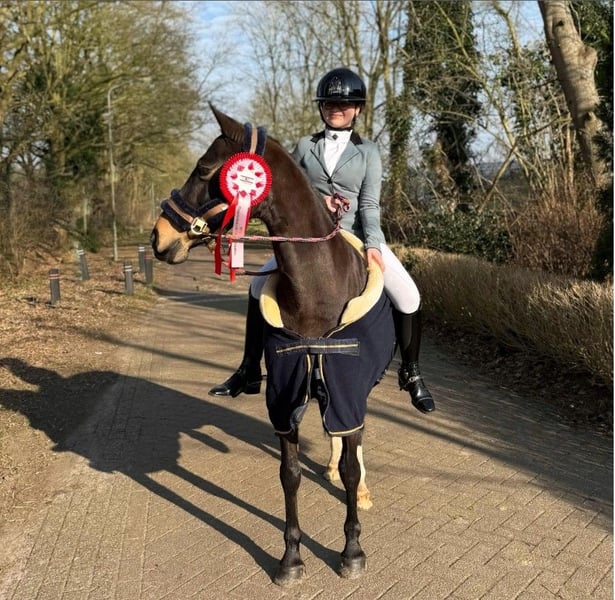 Honey komt helaas te koop wegens beëindiging van de paardensport. Ze is nu ruim 2 jaar in bezit van ons, onze dochter was nog maar 9 jaar en reed op de manege toen we Honey hebben gekocht. Ze heeft ontzettend veel van haar geleerd, zijn samen in de B dressuur begonnen en op dit moment L2+16 winstpunten. Ze hebben altijd mooie scores gereden met als hoogtepunt oa. Reservekampioen van Drenthe in de L1 2025, het rijden van een finale kür op muziek van een competitie en meerijden in een clinic op Horse Event. Ook maakten ze dit jaar uit van hun verenigings-viertalteam, waarin Honey op verschillende posities kon lopen. Daarnaast lest er nog een jongere amazone 1x per week op Honey en met deze amazone gaat ze geregeld op bixie wedstrijden. Honey is een fijne sportpony en je kan veel van haar leren, op wedstrijd doet ze altijd extra haar best. Ze kent alle oefeningen t/m het Z2 en kan goed verzamelen. Echter is ze wel een Welsh pony, ze bokt en steigert niet!! maar is ook geen dooie - een beetje rijervaring is wel gewenst. Ze kan een sprongetje maken en heeft buitenrit en ponykamp ervaring. Honey is een gezonde en fitte pony, heeft geen stalgebreken en is bij aankoop in 2023 klinisch goedgekeurd. Ze heeft gezonde/sterke hoeven en hoeft dus bijv. niet op ijzers. Ze staat bij ons overdag buiten en 's nachts op stal. Recent naar de tandarts geweest, voor de rest natuurlijk netjes ontwormd, geënt etc. We hebben ontzettend veel plezier van haar gehad en zoeken dan ook echt een fijne nieuwe plek voor haar. Ze loopt op het moment nog actief in de sport en wordt tevens bij gereden door de trainster. Ze kan nog jaren mee sportief gezien. Honey heeft een goed papier en heeft in het verleden al eens een palomino veulen gehad van Don Cremello du Bois. Voor meer info graag contact opnemen via tel/whatsapp: +31642904374 (nummer van onze trainster waar Honey ook in pension staat)
