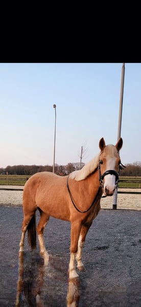 Daantje, un très gentil poney palomino Faites connaissance avec Daantje, une jument palomino de 3 ans avec 4 jambes blanches (grand poney C). Elle se montre très fiable, a un caractère très posé et aime apprendre ! Elle prend également plaisir à faire des sauts. Avec son caractère adorable, Daantje devient vraiment un poney idéal pour les enfants ! Contact - Téléphone : 06-31528273 - Localisation : Nord-Limbourg Si vous êtes intéressé ou avez des questions, n'hésitez pas à nous contacter. Nous attendons votre message avec impatience !🐴⭐️