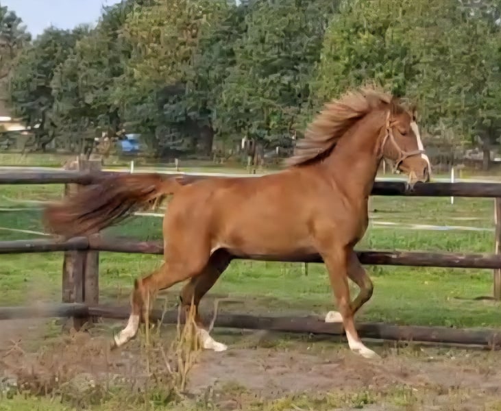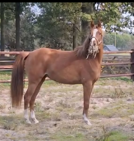 Wegens omstandigheden gaan we sterk inkrimpen, vandaar bieden wij een zeer goed bewegende 3 jarige vos merrie te koop aan. Heimolen's Felicia is een 3 jarige vos merrie met een stokmaat van 146 cm groot. Ze is de dochter van de goedgekeurde zwarte welsh hengst Old Avenue's Cezar. Old Avenue's Cezar is verkocht naar Amerika. Moeder is de MEERVOUDIG NAT. KAMPIOEN Vrl KEUR +PREFERENT merrie BELICIA. Uit deze merrie komen DIVERSE KAMPIOENEN VOORT onder andere de NRPS dressuur KAMPIOENS hengst HARVEY'S DREAM OF GOLD en de overall kampioen van de Dutch Pony Championship 2023: DURELLO Durello was tijdens de Elite Dressage Pony Sales de DUURSTE verkochte veilingtopper: (25.000)!! Moeder Belicia is ook de moeder van de 5 jarige nationaal reserve kampioens 2024 KEUR + ELITE merrie: Heimolens Sparklings Lizzy Felicia is dankzij haar ZEER MOOIE INTERESSANTE BEWEZEN PEDIGREE en daarbij ZEER STERKE BEWEGINGEN een zeer interessante en opvallende BLIKVANGER voor zowel de fokkerij en/of als sportpony!! Ze zal waarschijnlijk uitgroeien tot de ideale stokmaat van 1.47 - 1.48mtr. Voor meer informatie graag BELLEN! Twan: 00 31 6 53 47 22 60