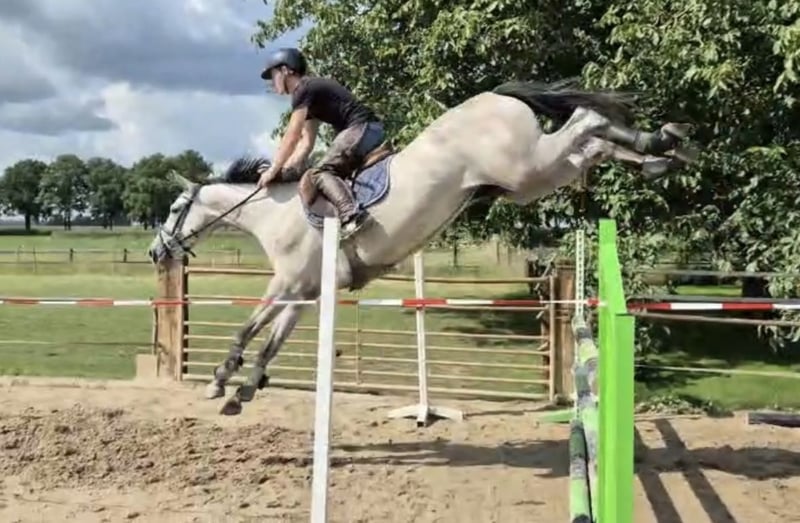 Se vende para una yegua de 5 años Airforce X Casco X Jasper, de una excelente línea materna con muchos caballos internacionales Caballo de gran calidad, con pocas faltas, casi siempre salta a la perfección sin errores. Revisión veterinaria perfecta. El precio es negociable. Para más información, por favor, envía un WhatsApp al +31622257506