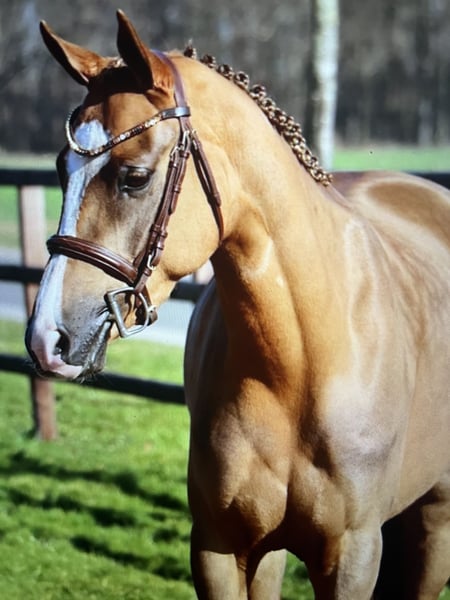 Unfortunately, ponies do not grow, which is why we are looking for a very good home for our Dutch pony mare Fabulous Fay. We started her under saddle ourselves at the age of 4 and have trained her gently. She has currently won A** show jumping competitions and has placed numerous times in young horse classes. Fay definitely has the potential for more. She impresses with her willingness to perform and the necessary drive for jumping, while always remaining manageable. In dressage, she is very light on the aids and goes easily on the bit, which is why we can also see her in dressage. In daily handling and while riding, she is absolutely well-behaved and easygoing. She is currently 1.46 m tall but will definitely stay within the pony size. A vet check from 2023 is available, with no findings. Fay is an absolute dream pony for children who enjoy pony sports and for parents who are knowledgeable about horse sports and care, as well as for a supportive trainer. Fay is a ribbon pony through and through! A real eye-catcher at any competition! If you have any questions, please feel free to contact us at: 0171/5219045