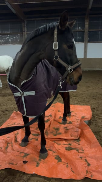 Pony castrato di 10 anni (altezza circa 1,52 m) in vendita No Limit, affettuosamente chiamato Norbert, dispone di buone GGA, è docile nel maneggio, socievole e ama i bambini. Viene regolarmente montato in arena, in campo e nel bosco. Da me è stato principalmente montato in modo dressuristico e ha anche già accumulato un po' di esperienza in concorsi minori WBO. Lì si comporta bene e ha ottenuto un punteggio nell'area degli 8. (Non adatto a chi ha grandi ambizioni di concorso a casa). Gli piace anche saltare, anche se da me non è stato regolarmente allenato in questo. Attualmente ha una ferratura con chiodi adesivi, ma può essere riportato a essere scalzo, anche se in questo caso avrà bisogno di scarpette nel bosco. Durante il giorno sta in un branco di castrati all'aperto e di notte in un box con paddock. È molto compatibile con gli altri. L'attrezzatura può essere completamente trasferita a pagamento extra. Sono disponibili radiografie del 2025 e possono essere visionate. Posto prima del prezzo. Per ulteriori domande e interesse, non esitate a chiamare o contattare tramite WhatsApp al numero 01604085276. Per escludere il turismo equestre, richiedo 30€ per la prova di monta, che verranno naturalmente detratti in caso di acquisto.