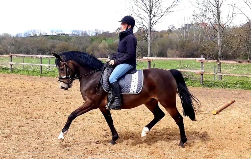 I offer here a pony that is not challenged in terms of sport, he had a dressage horse A start and was placed here right away, but he also likes to jump and enjoys his work. A sports partner who will certainly collect many more placings with the right child in the saddle