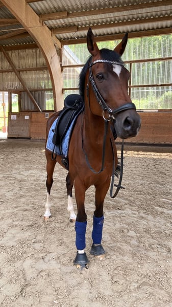 We are looking for a new home for our gelding "Lord" due to my studies. "The little Lord H." has been shown up to L level in dressage and A level in jumping. He is currently successful in A level jumping. In 2024, he was able to place in an E level dressage competition. He has primarily been ridden in jumping with us. Under saddle, he requires a secure, experienced rider's hand. He is rather "delicate" in build. At home, he does a good job and is also familiar with L level dressage movements. He is well-behaved in handling, has front shoes, and goes out to the pasture every day. He can be tried out at any time in 66482 Zweibrücken. I can be reached by phone on weekdays after 5 PM. Home before price!