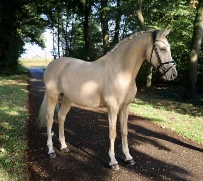 | Advertentie | Locatie: 49509 Recke | DR | Gelding | Palomino | Geb. 2014 | 1,48 m van Dimension AT x Dior Met „Dexter Mcdougle“ bieden wij een zeer stijlvol sportpaard aan om mee te starten. Als jonge pony wist hij al te overtuigen en kreeg tijdens de keuring het predicaat „gekeurd“. Omdat de verdere weg voor „Dexter“ echter in de sport moest liggen, is hij gecastreerd. De ruin kon direct zijn potentieel volledig benutten en werd Hannoveraans kampioen voor 3-jarigen in de regio. Vervolgens behaalde hij op 3-jarige leeftijd plaatsen in de finale van het Bundeschampionat. Ook op 5- en 6-jarige leeftijd wist hij te overtuigen met scores boven de 8 en kwam hij telkens succesvol in de finale van het Bundeschampionat. Op 5-jarige leeftijd wist hij de kleine finale met een score van 8,3 te winnen. „Dexter’s“ weg zou nu verder in de pony-sport moeten gaan. Hij is zeer fijn opgeleid en absoluut lektionsicher, waardoor ook beginners in de FEI-sport snel kunnen profiteren van zijn routine en vertrouwen. „Dexter“ verrast elke dag opnieuw met zijn inzet en prestatiebereidheid. Met zijn huidige amazone, die inmiddels te groot is voor de ponymaat, heeft hij talrijke plaatsen behaald in FEI-wedstrijden. Tot „Dexter’s“ grootste successen behoren de overwinning in de Ponytour in Balve 2023 met 74%, en zijn succesvolle optredens op het Hamburger Derby, waar hij in de finale bij het paardruil met alle ruiters boven de 70% scoorde. Wie op zoek is naar een droompony met slagingsgarantie, mag „Dexter“ niet missen. Een actuele, röntgenologisch keuringsrapport zonder afwijkingen ligt voor. https://youtu.be/GuYR5wJGyzU?si=H0Vc87n6ujuGQucR Prijs volgens kwaliteit. Bij serieuze interesse neem gerust telefonisch contact op via +49 170 7941333.