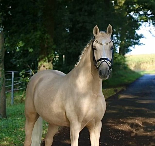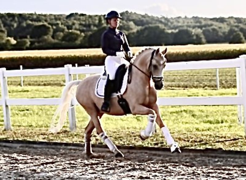 | Werbung | Standort: 49509 Recke | DR | Wallach | Palomino | *2014| 148 cm v. Dimension AT x Dior Mit „Dexter Mcdougle“ haben wir einen sehr schick aufgemachten Sportler zum losreiten. Bereits als junges Pony konnte er überzeugen und erhielt auf der Körung das Prädikat „gekört“. Da der weitere Weg für „Dexter“ jedoch in den Sport führen sollte, wurde er kastriert. Der Wallach konnte direkt sein Potential ausspielen und wurde Hannoveraner Landeschampion der 3-jährigen. Es folgten 3-jährig Platzierungen im Finale des Bundeschampionates. Ebenso 5 und 6-jährig konnte der Wallach mit Noten über 8 überzeugen und jeweils erfolgreich bis ins Finale des Bundeschampionates einziehen. 5-jährig konnte er das kleine Finale mit einer Note von 8,3 für sich entscheiden. „Dexter’s“ Weg sollte nun weiter in den Ponysport führen. Er wurde sehr fein ausgebildet und ist absolut lektionssicher, so dass auch Einsteiger in den FEI-Sport sehr schnell von seiner Routine und Sicherheit profitieren und lernen können. „Dexter“ begeistert jeden Tag aufs Neue mit seiner Leistungsbereitschaft. Mit seiner jetzigen Reiterin, die nun dem Ponymass entwachsen ist, konnte er zahlreiche Platzierungen in FEI-Prüfungen für sich verbuchen. Zu „Dexter’s“ größten Erfolgen zählen der Sieg in der Ponytour in Balve 2023 mit 74 %, sowie seine erfolgreichen Starts auf dem Hamburger Derby, wo er im Finale beim Pferdetausch mit allen Reitern über 70 % für sich verbuchen konnte. Wer ein absolutes Traumpony mit Schleifengarantie sucht, sollte sich „Dexter“ nicht entgehen lassen. Ein aktueller, befundfreier röntgonologischer Tüv liegt vor. https://youtu.be/GuYR5wJGyzU?si=H0Vc87n6ujuGQucR Preis der Qualität entsprechend. Bei ernsthaftem Interesse melden Sie sich gerne telefonisch unter der +491707941333.