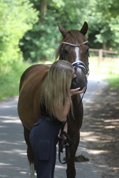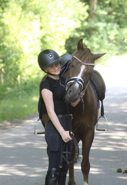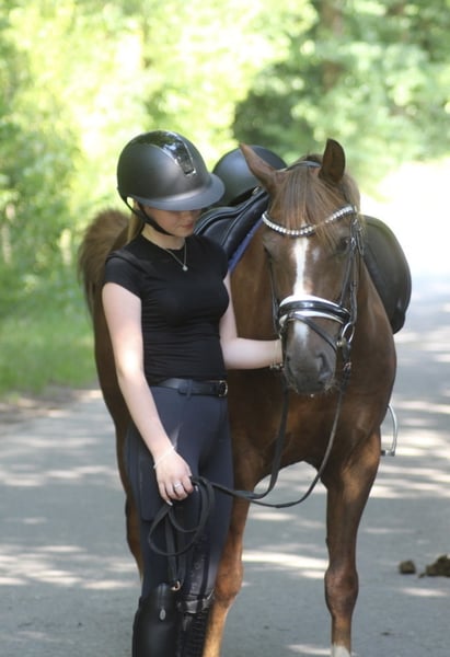 Schweren Herzens, habe ich mich dazu entschieden meinen 13 Jährigen Reitpony Wallach zu verkaufen. Birmingham oder auch liebevoll Buky genannt, deckt trotz seines eher geringen Stockmaßes von 143cm sehr gut ab. Er ist daher ideal geeignet für kleinere bis mittelgroße Personen oder Kinder/Jugendliche bis 160/165cm. Nach seiner Körung mit drei Jahren wurde Buky gelegt und ist Lektionen bis zur Klasse L gegangen und auf A-Niveau auf dem Turnier vorstellig geworden. Buky zeigt sich im Umgang als absolut verlässliches Allrounder Pony. Beim reiten versucht er sich immer von seiner besten Seite zu zeigen und äußert viel Interesse an neuen Lektionen. Aktuell befindet er sich auf einem soliden A-Niveau. Ebenso gerne geht er aber auch ins Gelände, ganz egal, ob in der Gruppe oder alleine. Dort geht er unerschrocken voran und lässt sich nicht aus der Ruhe bringen. Beim Putzen lässt er sich gerne verwöhnen und schmust für sein Leben gerne. Er lässt sich bei allem von unterschiedlichen Personen händeln und zeigt sich immer aufgeschlossen. Aktuell steht Buky ohne Decke im Offenstall und ist daher auch die Haltung mit anderen Pferden zusammen gewöhnt. Vorne trägt er zwei Eisen und zeigt beim beschlagen keine Probleme. Medizinisch hat Buky einen alten Fesselträger Schaden aufzuweisen, welcher jedoch ausgeheilt ist und ihm keine Schwierigkeiten bereitet, abgesehen davon, dass man das Belastungspensum in einem realen Rahmen halten sollte. Zusätzlich ist Buky leider auf seinem linken Auge erblindet. Größtenteils macht ihm dies keine Probleme, lediglich im Gelände, versichert er sich ab und zu mit einem Blick auf seine linke Seite. Beim Reiten in der Halle hat er hin und wieder auf der rechten Hand Schwierigkeiten auf dem äußeren Hufschlag zu bleiben und weicht gerne nach innen aus. Dabei kann er auch mal etwas flotter werden, durch Vertrauen in die reitende Person und eine gute Hilfengebung, kann dieses jedoch verhindert werden. Unarten wie Buckeln oder ähnliches, zeigt er nicht. Ich kann mir Buky gut in einem Eltern – Kind Gespann/in einer Familie oder bei einem eher klein gebliebenen Erwachsenen vorstellen, bei dem er der liebevolle Freizeitpartner sein kann und für sein aufgeschlossene und verlässliche Art geschätzt wird. Zusammen mit Buky kann man viele Abenteuer erleben und eine schöne Zeit verbringen. Die Möglichkeit einer Verfügung mit späteren Kaufoption besteht.