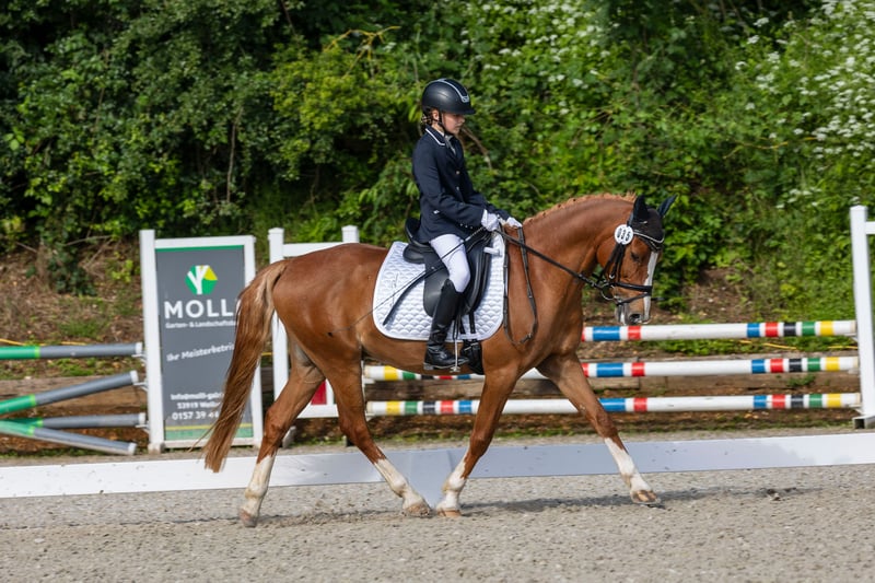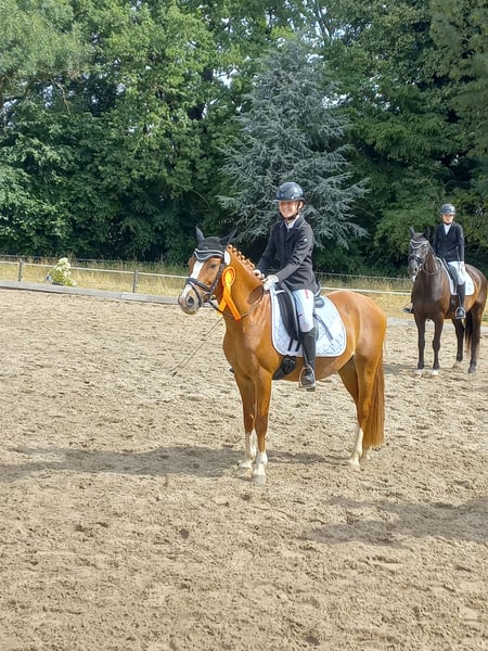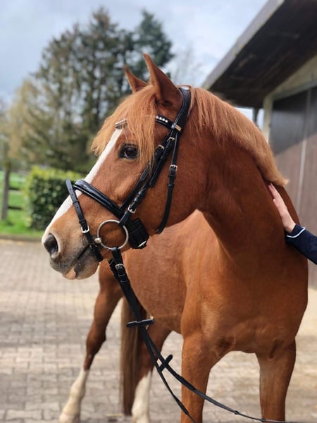 We must sadly part with our 13-year-old Dutch pony gelding Blitzi. He has been in our possession for 6 years, and my two daughters have learned a lot with and from him. They love him dearly, but my younger daughter is now getting too tall, and the transition to a larger pony/horse is unfortunately inevitable. Blitzi is a very handsome and appealing pony in "large horse format" with great conformation. He has good basic gaits, and my two daughters have successfully competed with him in competitions up to class A. They have won several dressage competitions and E-level dressage tests with him and have placed multiple times in A-level dressage against larger horses. Our pony loves to be engaged with. He also enjoys groundwork/obstacle training and is fearless. He is respectful in work, learns quickly and eagerly. He also enjoys trail riding. Blitzi lives with us in an open stable/large paddock box and is used to daytime turnout in the summer. He requires plenty of fresh air, so box confinement is not an option for him. In the summer, he receives wet hay (possibly haylage is also an option). In winter, he gets regular dry hay. Otherwise, he is healthy and very compatible with other horses. He is well-behaved and easy to ride. However, a rider must also be able to assert themselves. He is robust, regularly dewormed, vaccinated, and well-behaved for the farrier and loading. We are looking for a wonderful new home for him where he can spend plenty of time outdoors and have a lot of joy in a new family. There is also the option to take saddles with him. Only to the very best hands.