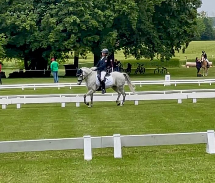 Since 2019, this little heartbreaker has accompanied our children from the lead-rein class to placements at the Golden Bridle and the Federal Youth Four-in-Hand. Unfortunately, he is not growing anymore, so after nearly seven wonderful years full of highlights, our shared journey comes to an end. Fred is very people-oriented and a cheeky little treasure. He is confident riding alone or in a group in the terrain and, in addition to his willingness to perform and learn, he is suitable for fun in dressage, jumping, and cross-country. He knows various groundwork exercises. He can also be ridden by beginners, including lunging and with side reins. He is not suitable as a weight carrier. We only place him in the very best hands and wish for him a younger rider who will accompany him faithfully on his riding journey, just as he has done for our children, and for whom he will give his all, just as he has done for ours. A selection of his achievements: - Won A-Dressage - District Champion in Dressage LK7 Multiple wins in E-Show jumping, including this year at Kranichstein with a score of 8.6 among over 50 competitors. Many wins and placings in E-Eventing / VE / Combined E, including placement in the Golden Bridle individual ranking with 8.6 in dressage and 9.1 in cross-country. Placed in the Federal Youth Four-in-Hand individual ranking, IGV Trophy Hessen winner.