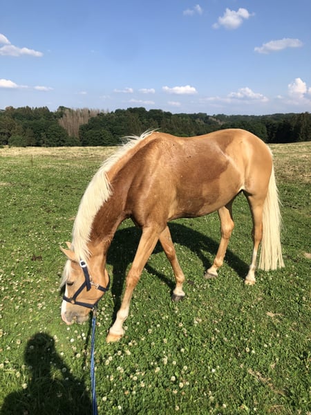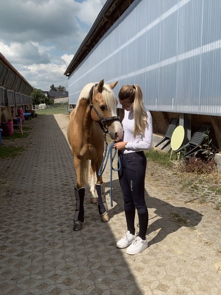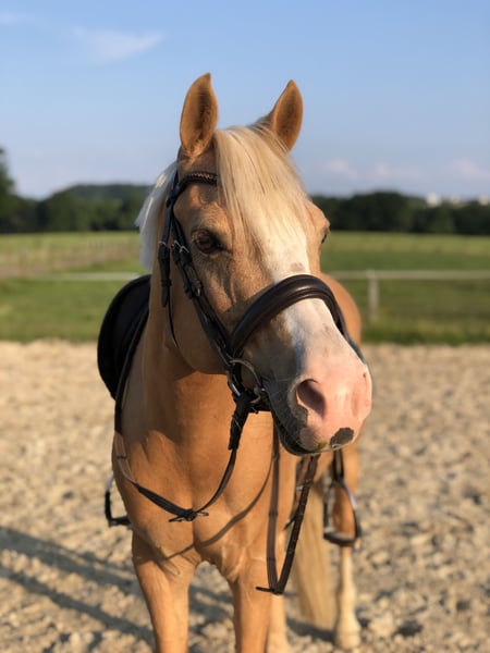 Schweren Herzens suche ich für meinen bildschönen Pony Wallach Maddox ein neues liebevolles Zuhause mit Familienanschluss. Maddox ist ein deutsches Reitpony, *2010 und hat einen Stockmaß von 1,45m. Wir haben ihn 2016 als gekörten Hengst gekauft, er ist A Dressur platziert und eine L Dressur mit mir gestartet, bevor ich aufs Großpferd umgestiegen bin. Er ist ein super aufgeweckter und neugieriger Kerl mit genügend Go, möchte immer gefallen und bringt jeden Tag höchste Motivation mit. Seine 16 Jahre merkt man ihm keineswegs an, er möchte jeden Tag beschäftigt und gearbeitet werden. Er liebt es ins Gelände zu gehen, auch alleine ist kein Problem. In der Gruppe wird er jedoch gerne mal hitzig und möchte vorne gehen. Da braucht er eine konsequente Hand, ist aber immer lieb. Er hat keine Unarten wie Steigen, Bocken, Beißen oder Treten. Er ist nicht schreckhaft oder wird kopflos, eher geht er neugierig auf die Dinge zu. Er ist ganz fein an den Hilfen, lässt sich auch von schwächeren Reitern problemlos reiten. Ein Anfängerpferd ist er aufgrund seines GOs allerdings nicht. Da er leider nicht der kräftigste ist, darf er maximal 55-60kg tragen. Er fühlt sich mit leichten Reitern sehr wohl, ist auch von Jüngeren brav zu reiten, verzeiht alle Fehler und ist sowohl im Umgang als auch im Sattel ganz geduldig und artig. Aufgrund leichten Spats darf er leider nicht mehr gesprungen werden, da war er aber auch eher immer ängstlich und hat es seinem Reiter zuliebe gemacht. Stangenarbeit hingegen liebt er und macht er ganz eifrig mit. Maddox kennt Haltung in der Paddockbox mit täglichem Weidegang / im Winter tut ihm Führmaschine aufgrund des Spats sehr gut. Hat er Konstante und tägliche Bewegung schränkt ihn der Befund nicht ein. Er ist Schmied- und Verladefromm, liebt es unterwegs zu sein und auf dem ein oder anderen Turnier im Mittelpunkt zu stehen. Maddox ist verträglich mit Wallachen und dominanten Stuten - spielt sehr viel und freut sich nachts über Ruhe in der Box. Er ist geimpft, entwurmt und die Zähne wurden im Februar frisch gemacht, ohne Befunde. Aktuelle Röntgenbilder von 02/2026 sind vorhanden. Ich könnte mir super ein Mutter-Tochter Gespann vorstellen. Ich suche ein Zuhause in dem er der kleine Star und wahr gewordene Barbiepony-Traum sein darf. Absolut Platz vor Preis! Es ist kein Zwangsverkauf, ich möchte ihn in den besten Händen wissen. Keine Händler oder Schulbetriebe. Ich behalte mir vor ein Vorkaufsrecht einzutragen, er soll kein Wanderpokal werden. Kontakt gerne per WhatsApp unter +49 157 84044562 Gerne versende ich Videos auf Anfrage :) Verkauf ausschließlich innerhalb DE.
