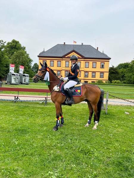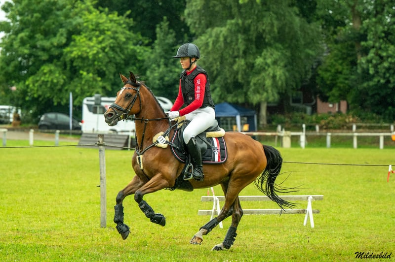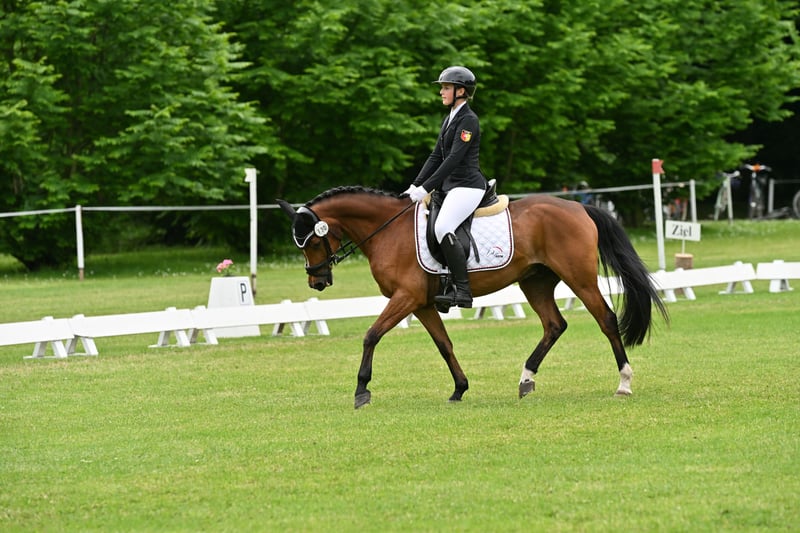 We are looking for a 5-star home for our Leo. He is a 16-year-old German riding pony by Vincent x Rubin, standing at 147 cm. He has only been competing in tournaments for a year, but he has already achieved impressive successes! In E and A show jumping, he has received scores over 8.0, and he is also active in eventing, as his passion is cross-country. Here, he has won style cross-country rides with scores up to 8.7 and has placed multiple times. Additionally, this year he participated in the golden saddle at the national level for the Weser-Ems team in Mecklenburg-Vorpommern and achieved 3rd place with the team, as well as placing in the individual ranking! In dressage, he is very fine to ride, which requires some practice, but he can also be ridden nicely in a frame. In jumping and cross-country, he has a nice go, but is always manageable. Leo is kept in a paddock or, in summer, is on pasture 24/7, and this should remain the case! He enjoys it, and he has a handicap where constant movement is beneficial. This results in the favorable price, which is negotiable for a great home, but he will not be given away. He has had no issues with us, which is evidenced by his consistent tournament participation and successes. I am happy to provide more information. He enjoys going out for rides and can be ridden with a pad or neck ring. Leo is a lively little guy, but always sweet! He comes running in from the pasture. Veterinary care, farrier, clipping... all no problem. In summer, he had shoes on four times, which are now off. We wish for him a kind girl or boy who would like to have fun with him in E and A show jumping and cross-country rides! We are only selling him because my daughter has outgrown him. To save Leo unnecessary trial rides, there is a fee of 20 euros, which will be refunded upon purchase! Inquiries are welcome via WhatsApp.