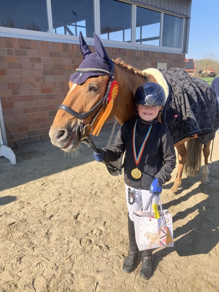 Schweren Herzens verkaufen wir unseren Dzeko TF in gute Hände. Er ist ein sehr fein zu reitendes und sensibles Pony mit tollen Grundgangarten und einer tollen Springmanier. Bereits als junges Springpony war er Finalist beim Bundeschampionat. In seiner weiteren Karriere konnte er sehr viele Siege und Platzierungen bis A** .feiern. In den letzten 2 Jahren hat Dzeko unserer Tochter sehr viele Siege und Platzierungen mit sehr hohen Noten bis 80cm ermöglicht. Auch in Dressuren ist er immer brav und zuverlässig gelaufen, und auch hier ist noch viel Potenzial vorhanden. Er liegt uns sehr am Herzen und wir wünschen uns für ihn eine liebevolles und wertschätzendes neues Zuhause. Für alle weiteren Infos stehe ich bei ernsthaftem Interesse gern zur Verfügung.