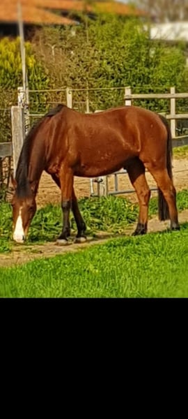 Leider muss ich aus Zeitgründen mein Deutsches Reitpony (Wallach) verkaufen. Urmel ist ein verlässliches Freizeitpony und geht sehr gerne ins Gelände. Er braucht einen sicheren Reiter, dann kann man mit ihm tolle Ausritte genießen. Er kennt Autoverkehr, Trecker etc. Platzarbeit ist ihm auch nicht fremd. Im Umgang ist er ein braves und verlässliches Pony, welches aber beschäftigt und regelmäßig bewegt werden möchte. Da er ab und an mal einen kleinen Hüpfer macht, ist er für Anfänger und Kinder als Reitpferd nicht geeignet. Er lebt aktuell im Offenstall in einer Wallach Herde, kennt es aber auch in einer gemischten Herde. Urmel ist seit 13 Jahren in meinem Besitz und hat vor ca. 10 Jahren mit dem Koppen begonnen ( Aufsetzkopper). Er hatte bisher nie großartige Probleme /Krankheiten aufgrund des Koppens, Rehe o.ä. gehabt. Er wurde regelmäßig dem Hufschmied, Zahnarzt, Tierarzt für Impfungen vorgestellt. Seit 1,5 Jahren läuft er komplett barhuf. Geländeritte sind mit Hufschuhen (vorne) kein Problem. Bei Bedarf kann ich ihn mit kompletter Ausrüstung abgeben. Urmel ist ein Mix aus Lewitzer und Dt. Reitpony und besitzt einen vollständigen Pass. Ich wünsche mir für ihn ein neues Zuhause in einem Offenstall, wo er als Reitpferd eine tolle Zeit verbringen darf.