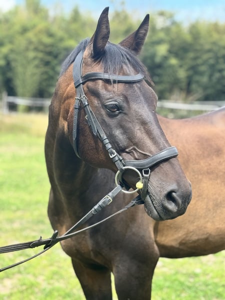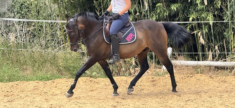 Nemo ist ein 16 jähriges Dressurpony abstammend von Nemax. Er läuft im Training auf dem sicheren A-Niveau, die Lektionen der Klasse L beherrscht er. Wir waren nicht mit ihm auf dem Tunier, aber er wäre mit dem passenden Partner dafür geeignet. Mit einem Stockmaß von 148 cm wirkt er, durch seinen sportlichen Körperbau, wie ein Kleinpferd und überzeugt mit drei ausdrucksstarken Grundgangarten. Kleine Sprünge überwindet er problemlos und hat große Freunde im Gelände. Nemo ist ein ehrgeiziges und liebes Pony, der jeden Tag für seinen Reiter glänzen will. Leider müssen wir ihn abgeben, da ich mit meiner Körpergröße für ihn nicht mehr geeignet bin. Er ist sowohl im täglichen Umgang als auch unter dem Sattel sehr artig, schmiede- und verladefrom. Er ist sozial mit Stuten und Wallachen. Wir suchen für ihn ambitionierte Amateure und oder Reiter mit einem ausreichenden Maß an Erfahrung und Geduld, mit dem er weiterhin wachsen kann. Nemo ist voll druchgeimpft und entwurmt. Röntgenbilder liegen vor.