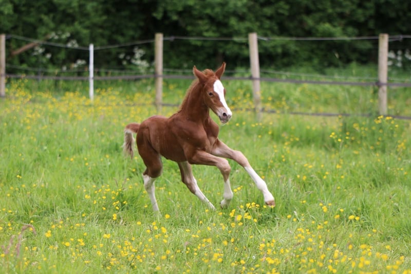 We are looking for a new home for our riding pony gelding "Napoleon N," born on May 17, 2024. He is a son of the Bundeschampion and licensing champion stallion (Weser-Ems) "Neverland WE." A large number of the offspring of "Neverland WE" have already been successfully presented at shows and championships (including the Bundeschampion "Noble Dance"). Napoleon's mother is a small (approximately 1.61 m) warmblood mare (German Sport Horse) by the premium stallion and licensing champion "Quintus Gold." Due to this lineage, Napoleon is likely to be suitable for both show jumping and dressage. He is expected to reach a final height of approximately 1.55 – 1.60 m. Two half-brothers from the mare have reached about this height at the ages of 3 and 5. His three-year-old half-brother by "Crown Charm of Royal" can be seen in a picture with him. Napoleon is visually striking due to his large blaze and his four high white legs. He is people-oriented, halter-trained, and is familiar with the farrier and veterinarian through vaccinations and deworming. Currently, he is living with several young horses on the summer pasture and can be visited and gotten to know there. The pictures are partly current and partly from 2024.