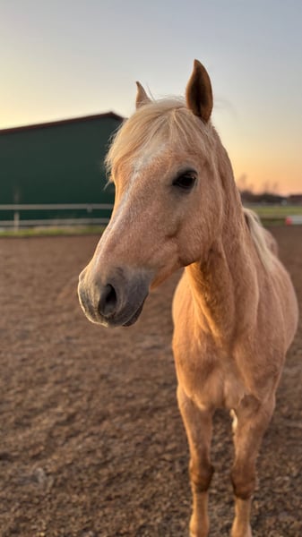 Suche für meinen Wallach, deutsches Reitpony - Welsh Pony Mix Wallach, geb. 2006, in wunderschönem Palomino-Farbton ein passendes Zuhause. Vor einigen Jahren hat er einen Hufreheschub bekommen, mit passender Fütterung und Hufbearbeitung kommt er aber super zurecht. Golden Mister Sunshine hat zusätzlich Arthrose und Spat in den Gelenken in der Hinterhand. Er sucht ein Zuhause indem er sich selbst soviel bewegen kann wie er möchte und einfach seine Rente genießen kann.