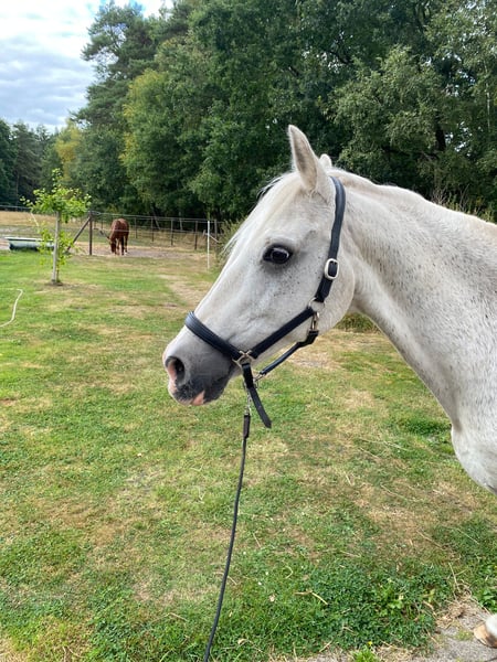 For a protection fee. Our 20-year-old German Riding Pony gelding is looking for a loving home. Height: 1.45m, always in good health and only not rideable due to an old injury. Very easy to care for, friendly, and cuddly. Loves contact with his friends. We look forward to hearing from you only if you are genuinely interested. It is already very difficult for us to let him go. We are happy to answer any further questions.