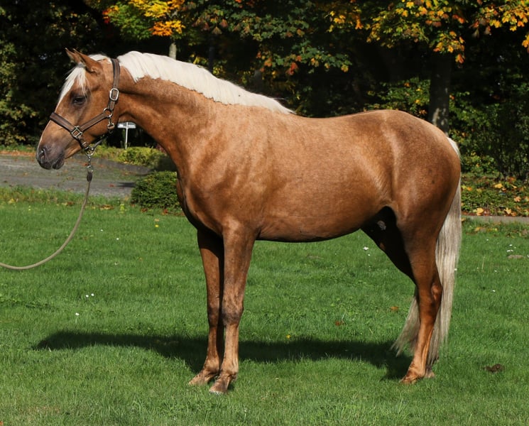 This impressive XXL riding pony stallion has recently been gelded and is being offered due to the owner's personal circumstances. He has enjoyed excellent upbringing and has already been radiographed without any findings. Goldbrilliant – the name says it all! As a foal, he impressively left the foal show as a winner. Now at 2½ years old, he has developed beautifully and convinces with three good gaits and plenty of expression. A very good walk completes the package. If you're looking for a dream XXL pony to train, you've come to the right place! A brother from the same dam competes up to Inter I level. Easy to handle, he goes on pasture, paddock, and in the lunging ring. Priced at the lower end of the listed category! Privately owned.