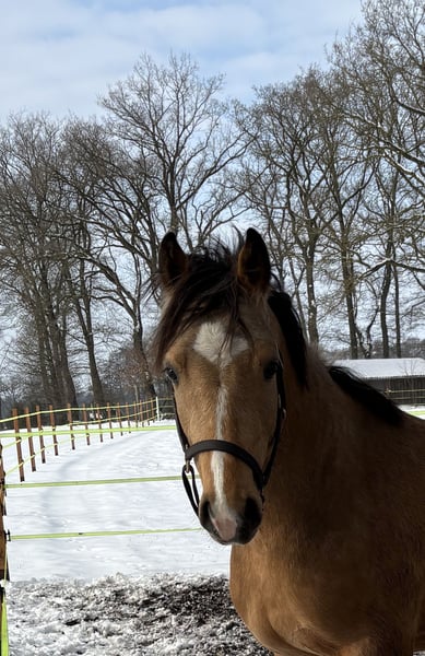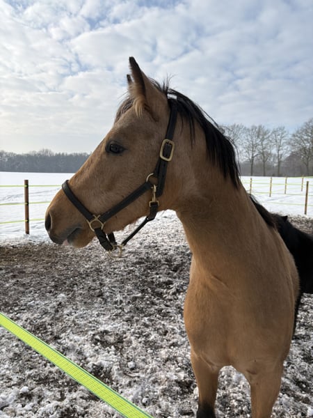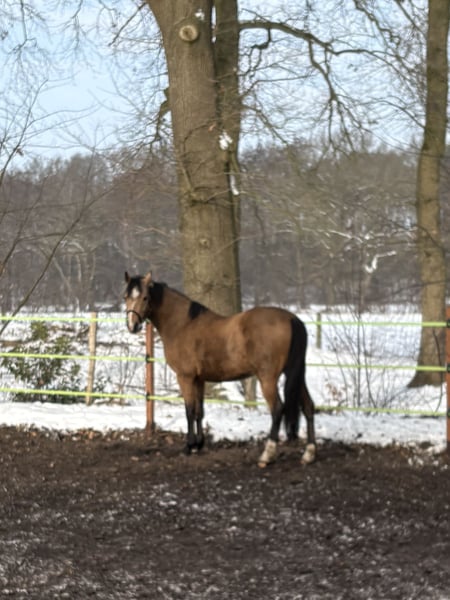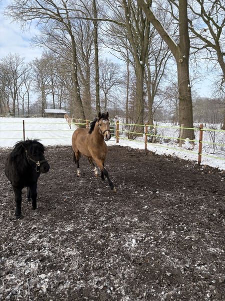 Zum verkauf steht ein Dreijähriger Reitpony Wallach. Charakterstark weiß er stets mit guten Bewegungen zu überzeugen. Er wird ein tolles zukünftiges Kinderpony in allen Spaten der Reiterei. Aktuell misst er 1,40 m und ist noch roh. Das Pony wird nicht zur Verfügung gestellt und Ratenzahlung ist für uns auch keine Option. Tauschen wollen wir auch nicht. Das Pony war für unseren Sohn gedacht, leider zeigt er kein Interesse mehr an der Reiterei. Ein Video ist nicht vorhanden. Bei Fragen gerne melden 01738726714