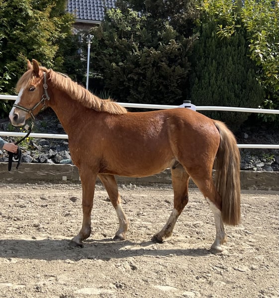 M&M Mister Mystery ist ein 3jähriger Deutscher Reitponywallach Er ist ein Fuchs mit weißen Abzeichen und zur Zeit ca 1,42m groß, er wird voraussichtlich das Endmaß nicht überschreiten. Sein Vater ist der TOP Sportponyhengst MESCAL, er war Bundeschampion der 5 und 6 jährigen Springponys und startet seit 2023 erfolgreich in Dressurprüfungen der Klasse S. Mister Mystery kennt altersentsprechend das Freispringen und die Longe, er ist lieb im Umgang und lässt sich auch von Kindern gerne putzen und umsorgen. Er geht gerne auf den Anhänger und ist brav beim Schmied. Er ist Straßensicher und kennt Hunde, Katzen und Kinder. Durch seine freundliche und aufgeschlossene Art ist er sowohl für den ambitionierten Freizeitreiter als auch für den Nachwuchs im Turniersport bestens geeignet. Wir sehen ihn sowohl im Dressurviereck sowie im Pacours oder in der Vielseitigkeit. Ein echtes Talent mit viel Potenzial für die Zukunft! Gerne ruft an um weitere Infos zu bekommen. 0171 9550003