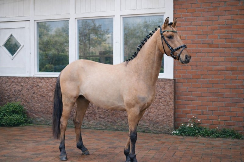 Sometimes, a pony comes along that you don’t just see – you immediately fall in love with it. That’s exactly the case here. This recently backed young pony impresses with an absolutely unique and perfect temperament – both in daily handling and under saddle. He is well-behaved, attentive, and uncomplicated, free of any vices, and always motivated and eager to learn. His remarkable mental clarity stands out: even now, he is ridden by children and consistently provides a sense of security and confidence. His breeding-based dressage qualities are above average. With elastic, rhythmically correct movements, a natural uphill tendency, and a beautiful self-carriage, he possesses everything needed for advanced pony sport with children and young riders. His pedigree leaves no wishes unfulfilled for ambitious goals and highlights his sporting potential. But he is not only impressive in dressage – in free jumping, he demonstrates his second passion with great commitment, awareness, and technique. He makes very powerful, well-placed jumps and always appears attentive and ambitious. This overall package is rounded off by his strikingly beautiful face with soft features and that special “love-at-first-sight” look that captures everyone immediately. This is not only a future star in the making but above all a highly intelligent, strong-willed pony with a big heart and enormous sporting potential – a true rising talent for nurturing hands. He grew up with us in a loving, professional environment in a premium stable. He is familiar with tractors, playing children, dogs, and daily interactions with conspecifics, and enjoys all-day turnout in the paddock, always displaying excellent temperament. He has been accustomed to the routines of an active riding operation and has been trained in this environment, allowing him to present himself confidently, focused, and completely professional even in busy riding halls. It is therefore very important to us that he finds a home in the future that continues to provide him with the same quality of care, handling, and support. **AKU and extensive X-ray images (no abnormalities) are available, less than 3 months old.** ***A trial ride fee of €50 will be charged, which will be credited toward the purchase price. We kindly ask for understanding that we prefer to avoid unnecessary trial rides for this young, promising pony and therefore only offer him to serious, genuinely interested riders.***