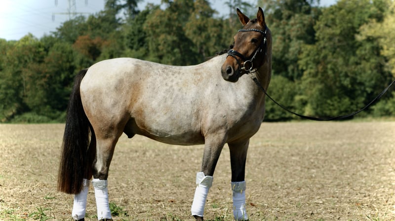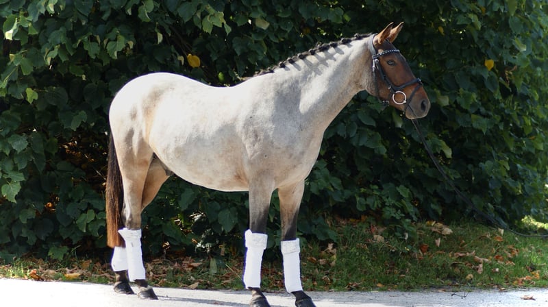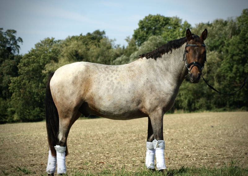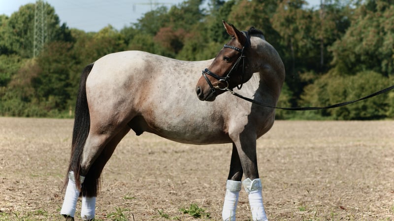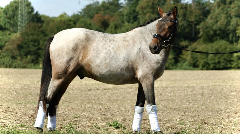Duitse rijpony van Del Dayo te koop. Wij verkopen onze dubbelveranlagde, prachtige 3-jarige ponyruin. De ruin heeft een actuele schofthoogte van 1,44 en zal op deze maat blijven. Hij valt op door zijn zeldzame kleur roan en is daarmee overal een absolute eyecatcher. Het pony is in de omgang zeer braaf, laat zich door niets uit zijn rust brengen en maakt ons dagelijks onder de indruk met zijn ontspannen aard. Hij is ingereden en is altijd braaf, doet alles heel goed mee en heeft een zeer heldere geest. We kunnen ons voor hem vanwege zijn lieve karakter goed een jeugdige ruiter met de juiste begeleiding voorstellen, maar ook een volwassen ruiter, omdat hij door zijn lichaamsbouw ook deze goed kan bedienen. Bij het vrijspringen toont het pony veel talent. De ruin beschikt over een zeer goede grote AKU inclusief röntgenfoto's zonder bevindingen. Vanwege zijn absoluut ontspannen aard met alle omgevingsinvloeden kunnen we ons ons pony goed voorstellen in de veelzijdigheid. Bij vragen graag bellen naar 0172/245 33 42. We verkopen het pony uitsluitend in zeer goede handen. We sturen geen video's zonder voorafgaand telefoongesprek. Het pony kan in Ratingen worden bezichtigd.