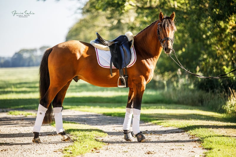 Exklusives deutsches Reitpony mit herausragender Qualität Wir präsentieren einen außergewöhnlichen deutschen Reitpony Wallach, dem eine vielversprechende Zukunft bevorsteht. Steendieks Magic Mike besticht nicht nur durch drei erstklassige Grundgangarten, sondern auch durch einen makellosen Charakter und eine bemerkenswerte Arbeitseinstellung. Er bringt alle Voraussetzungen mit, um ein zukünftiges Erfolgssportpony zu werden. Geboren im Jahr 2022, entstammt dieser Hengst der renommierten Väter Morgensterns D'Artagnan x FS Chambertin, was ihm eine exzellente Abstammung für den Dressursport verleiht. Ponyhengst Morgensterns D'Artagnan (Vater) ist am 13.02.2021 in Elmshorn gekört worden und ist der Sohn des FS Don't Worry aus der FS Carmelita. (Muttervater) FS Chambertin hat sich als einflussreicher Vererber etabliert. Mit über 130 Nachkommen hat FS Chambertin zahlreiche gekörte Hengste hervorgebracht, darunter Tackmann's Cantuccini und Steendieks Cahmbertin Jr., die beide mit über 30 Platzierungen im Sport glänzen. FS Chambertin's Vererbungskraft und die Vielseitigkeit seiner Nachkommen machen ihn zu einem wertvollen Bestandteil der modernen Ponyzucht. Obwohl er erst seit wenigen Wochen unter dem Sattel ist, meistert er jede neue Situation mit bemerkenswerter Souveränität. Er zeigt keinerlei Unarten wie Bocken oder Steigen und präsentiert sich für sein Alter als bemerkenswert unerschrocken und abgeklärt. Nichtsdestotrotz handelt es sich um ein dreijähriges Pony, das einen erfahrenen Reiter benötigt. Aufgrund seines gutmütigen Wesens wäre er jedoch auch als zukünftiges Kinderpony vorstellbar. Seine aktuelle Größe beträgt ca. 1,45 m. Mit der richtigen Förderung wird dieses Pony zweifellos eine vielversprechende Karriere im Dressursport einschlagen. Ein sehr guter und lückenloser TÜV von April liegt ohne Befunde vor. Für weitere Informationen stehen wir Ihnen gerne zur Verfügung.