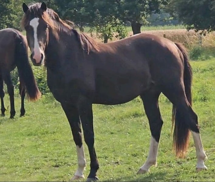 Verkaufe ein Deutsches Reitpony, geb. 2023, mit einem Stockmaß von ca. 148 cm. Diffindo ist ein Braunfalbe (Bay Dun). Unser junges Deutsches Reitpony Diffindo aus eigener Zucht sucht ein neues Zuhause wegen Bestandsverkleinerung. Diffindo ist ein neugieriges und menschenzugewandtes Pony was gerne geputzt und gekuschelt wird. Kennt das Fohlen-ABC und ist Halfterführig. Wurde regelmäßig beim Hufschmied vorgestellt sowie regelmäßig Entwurmt und gegen Tetanus und West-Nile geimpft. Derzeit steht Diffindo noch in einer Jungpferde Gruppe in der Aufzucht im Offenstall. Diffindo ist ein vielversprechendes Nachwuchspony für den Sport und den Freizeitbereich. Er hat das Potential ein tolles Reitpony zu werden. Bei Interesse stehe ich gerne für weitere Informationen und eine Besichtigung zur Verfügung.