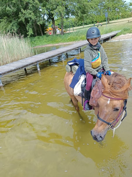 Verkaufe deutsches Reitpony – Wallach, geb. 2023, Fuchsfalbe Zum Verkauf steht ein hübscher Reitpony-Wallach, geboren im Jahr 2023. Mit einem Stockmaß von zur Zeit 148 cm. Seine elegante Färbung mit Aalstrich und sein freundliches Wesen machen ihn zu einem idealen Partner für ambitionierte Reiter und Reiterinnen. Der junge Wallach hat ein angenehmes Temperament und ist bei mir in einer Jungpferdeherde aufgewachsen. Er ist ausgeglichen, gesund und frei von Krankheiten. Sein Vater Neverland war 2019, 2021 Bronze Bundeschampionat Dressurponys, 2022 Bundeschampion, 2023 FN-Bundessieger der dressurbetonten Hengste-Altersklasse II: 7- bis 12 jährige. Seine Mutter Nestina von AMD Notre Bon ist bei uns das verlässlichste Kinderpony (siehe Bilder)sie geht regelmäßig auf Wanderritte und bringt den kleinsten Reitern alles bei. Ich Verkaufe dieses Traumpony nur weil ich ihm in seiner weiteren Ausbildung nicht gerecht werden kann. Nougat ist noch roh und kann somit von seinem neuen Reiter gleich so ausgebildet werden wie man es selbst gern hätte. Bei Interesse oder für weitere Informationen stehe ich gerne zur Verfügung. Ein Besuch vor Ort ist nach Vereinbarung möglich.