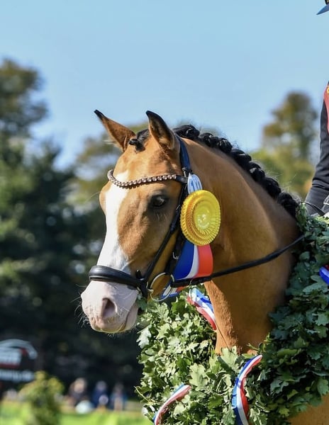Mon Dieu, geboren am 21.04.2021, ist ein kleiner Charmeur, mit großen Bewegungen. Bereits dreijährig konnte der kleine Mann in seiner ersten Reitponyprüfung überzeugen und sicherte sich Platz 3. Mon Dieu ist bisher von uns abwechslungsreich gefördert worden und hat seine ersten Strandausritte, sowie diverse Trainingseinheiten im Geländepark mit absoluter Ruhe und Gelassenheit absolviert. Dieses Jahr konnte er sich in der Reitponyprüfung in Bad Segeberg den Titel des Landeschampion der vierjährigen Reitponys sichern. Mon Dieu ist dem Menschen sehr zugetan und liebt jegliche Form der Aufmerksamkeit, er ist sehr schlau, lernt schnell und hat genügend Go. Der kleine Mann wird direkt vom Züchter verkauft. Dem Alter entsprechend gerne an erfahrene Reiter, die sich über die Ausbildung eines solchen Ponys bewusst sind. Es besteht ebenfalls die Möglichkeit, dass das Pony nach dem Kauf, zur weiteren Ausbildung bei uns bleibt. Das Pony liegt im unteren Bereich der angegeben Preiskategorie. Hat Mon Dieu ihr Interesse geweckt? Dann freut er sich Sie kennenzulernen.