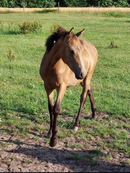 **Sales Advertisement: Charming German Riding Pony Gelding for Sale** For sale is a promising German Riding Pony gelding, born in 2022. This young gelding impresses not only with his beautiful buckskin color but also with his harmonious conformation and a pleasant height of 140 cm, although he is still growing. He already shows great potential in dressage and convinces with his elegant movements and willingness to learn. This gelding is the ideal partner for ambitious riders looking for a talented young horse that can grow into a true star with the right support. If you are looking for a young, talented dressage pony/show jumping pony that captivates with its charm and presence, then this gelding is just right for you. For further information or to arrange a viewing appointment, please do not hesitate to contact us.